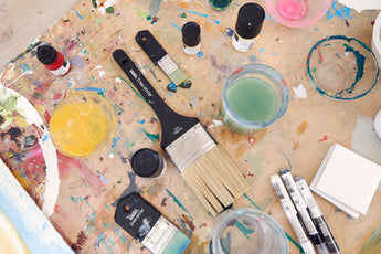 Once a new formulation is in process in the lab, it’s time to call in our in-house packaging technologists. They’re always looking to improve usability for you in the studio, so they work closely with our in-house artists to find the right format. For our Soft Body and Acrylic Gouache bottles, we asked a big group of artists to sketch out their dream packaging as our starting point, before playing with a range of shapes and materials. The technologists then commission prototypes and torture test them with artists to make sure they’re fit for purpose. Functionality is king here and we're always looking to innovate. In 1980 we were the first company to change our tubes from pure metal to lightweight glaminate (a technology commonly used in the cosmetic industry) to stop the problem of tubes corroding and cracking with use. Liquitex packaging needs to stand the test of time. And the reality of life in the studio.