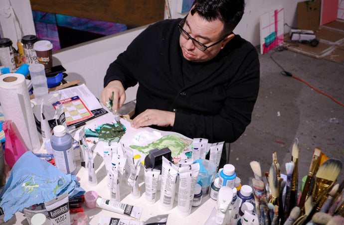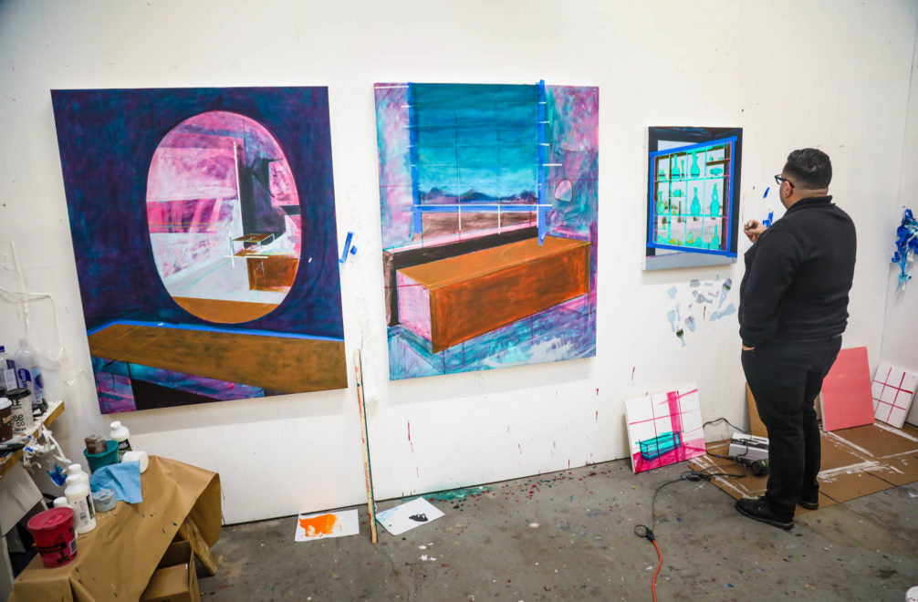 From collages to installations, small drawings to wall-sized paintings, Erik Parra uses a breadth of materials to keep his practice dynamic. He has exhibited his award-winning works in major artistic hubs like Berlin, London and New York. During his Liquitex Cadmium-Free Research Residency in San Francisco, Erik used our materials to explore the subliminal and experiential elements of interiors in his paintings. Discover how he got on at Minnesota Street Project studios, here.