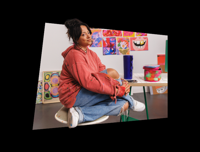 A longtime fan of Liquitex Basics, COVL lives to push herself out of her comfort zone and believes it’s at the heart of creative evolution. Constantly exploring different surfaces, scales and media, she shifts from virtual to physical. Her first self produced multi-city show HOMESICK, explored the nuances of healing and the power of rewriting our histories through a larger-than-life lens. COVL is currently artist in residence at Industry City, Brooklyn, where she's facilitating and programming events