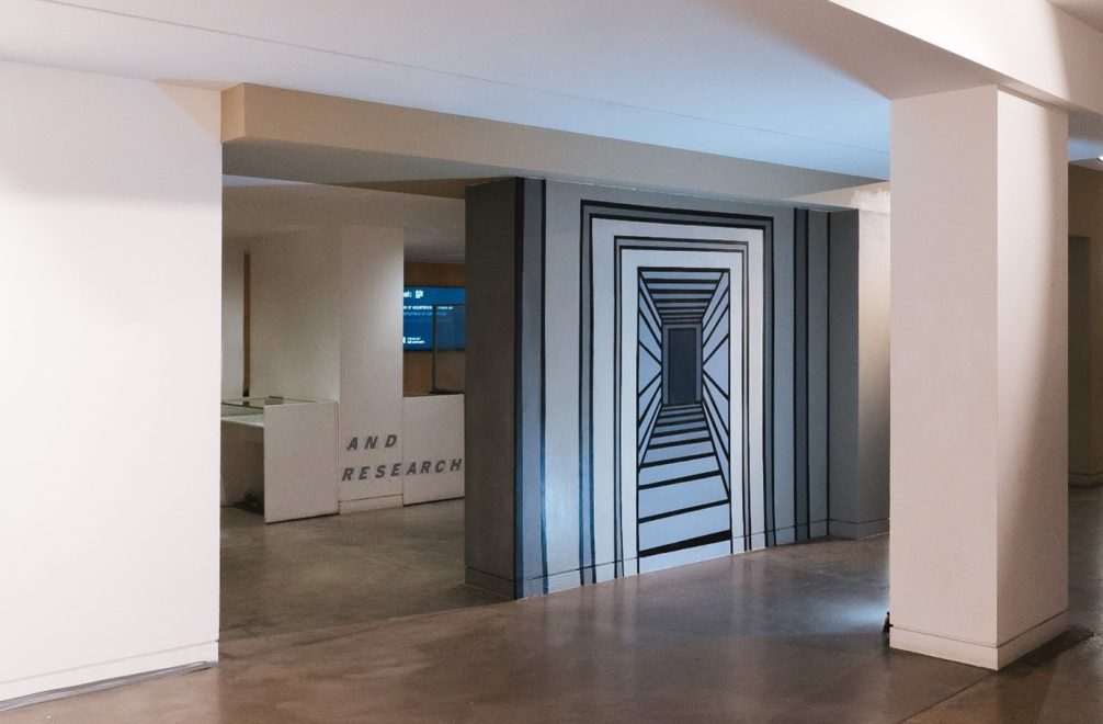After an open call for entries, the winning design came from Emily Jackson. Studying on the BA Fine Art Painting course at UAL Camberwell College of Arts, Emily’s work explores the concept of liminal space, investigating the relationship between line and perception. Her mural took inspiration from indie games and technical drawings, aiming to act as a gateway, inviting the public to step into a place previously unexplored. “For this project, I wanted to use the scale of the wall to create a life-sized portal. The great thing about liminal space is that it goes both ways, so this portal could lead to a hallway which could also lead to somewhere else. I didn’t want the wall to appear like a window - just showing someplace else - I wanted the viewer to feel like they could walk in”.