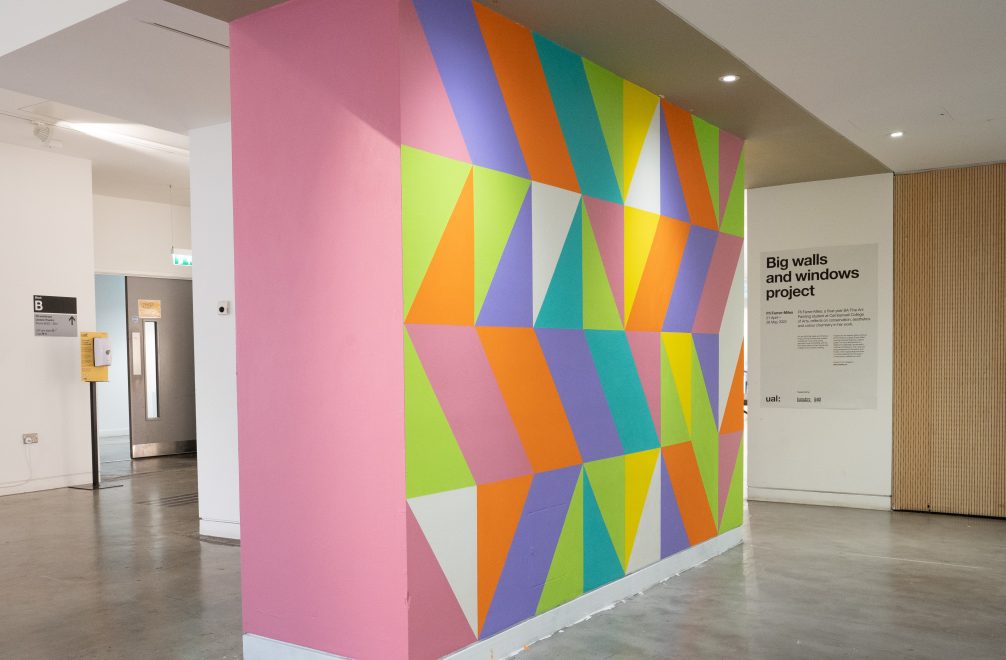 A massive white space. Pots of paint. Brushes, and time. What would you do? Welcome to Big Walls and Windows, an annual project which offers art students a chance to create a site-specific installation on a large ambitious scale. The initiative started life in 2013 and is a tri-partnership between Liquitex, UK-based art retail chain Cass Art and University of the Arts London (UAL). Made up of 6 colleges, UAL is Europe’s largest specialist art and design university, developing students at every level, from foundation to postgraduate.