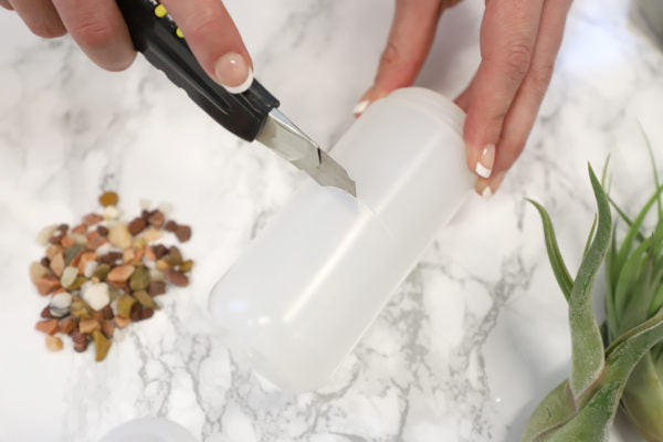 Use a craft knife to remove the top from your empty paint bottle. Remove any labels and make sure they are washed clean.