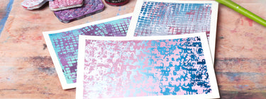You can create your own custom stamp or buy one ready-designed from art suppliers. The same stamp can give you different effects depending on your media and surface texture. The fluidity of Liquitex Acrylic Ink makes it ideal for finely detailed stamps, while thicker paints and mediums will yield more possibilities for the same stamp set.
