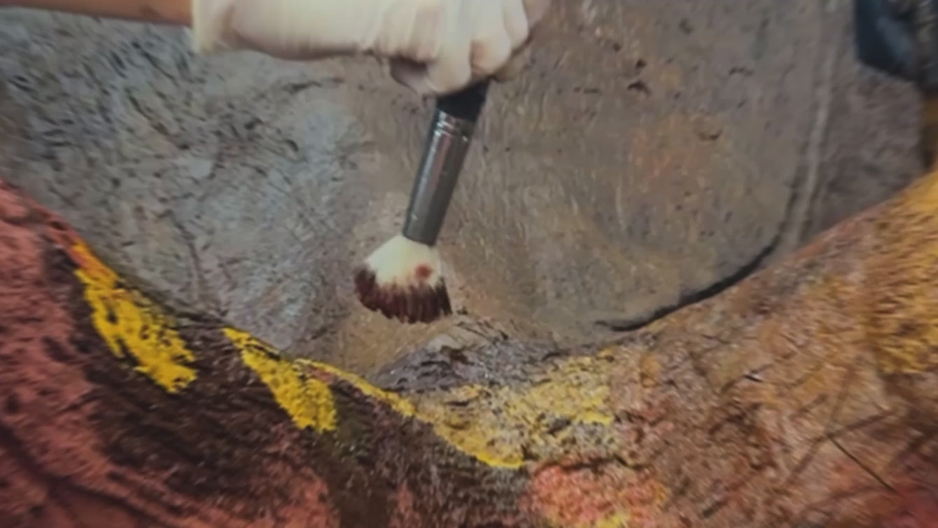 Christine Schreier and Kerri Neiheisel are paleo artists that work hard to make the casts look exactly like the originals, reflecting the local earth they were found in. Once ready for painting, she uses stippling and blending techniques with multiple earth colors and brushes to get a naturalistic effect. Three main Liquitex Soft Body colors match the earth in the area where the fossils are found - Burnt Umber, Raw Umber and Yellow Oxide. These are dotted, blended and layered to make it look authentic and Unbleached Titanium and Burnt Sienna are often used as accent colors.