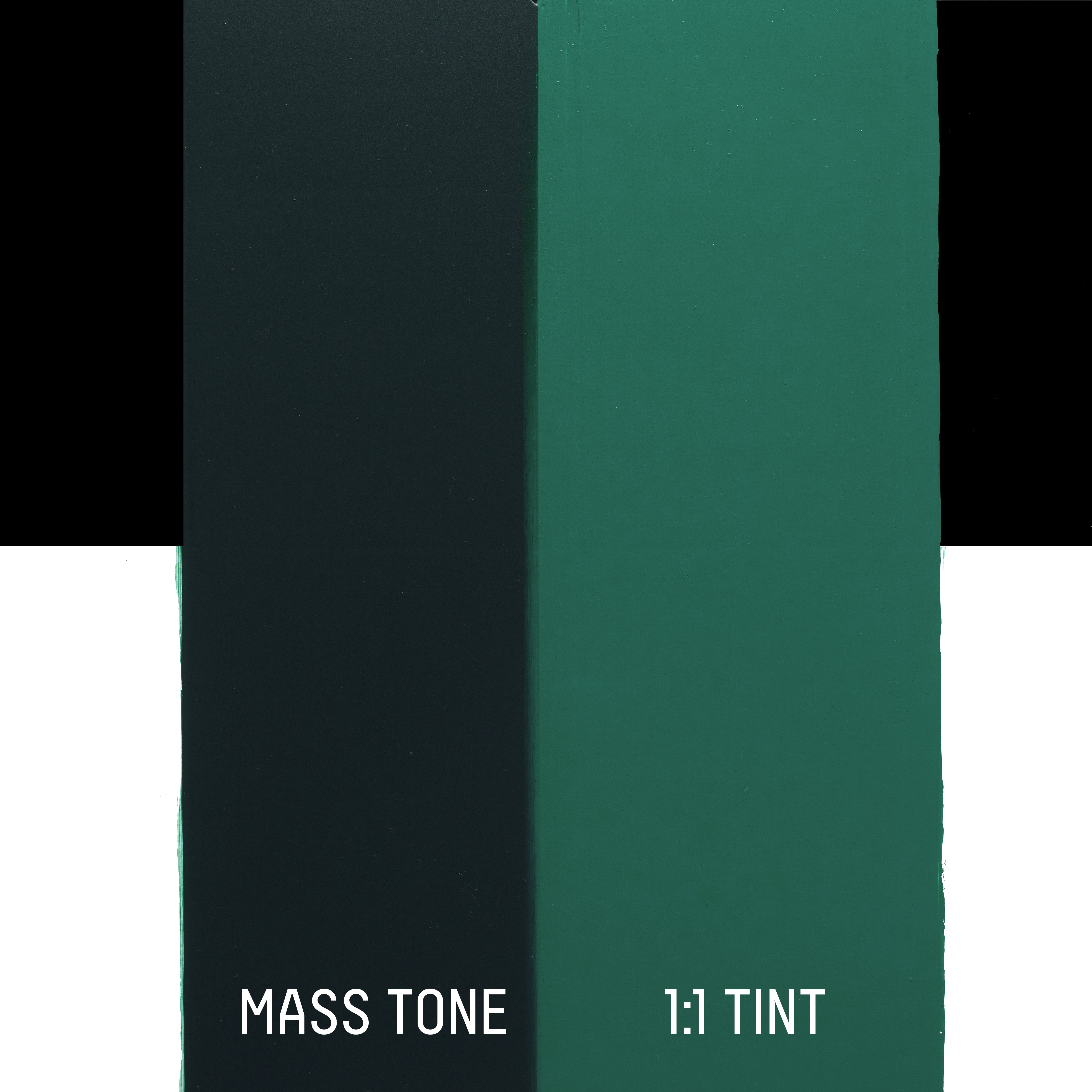 An opaque deep green made of three pigments - phthalocyanine blue (blue green shade), dioxazine purple and arylide yellow