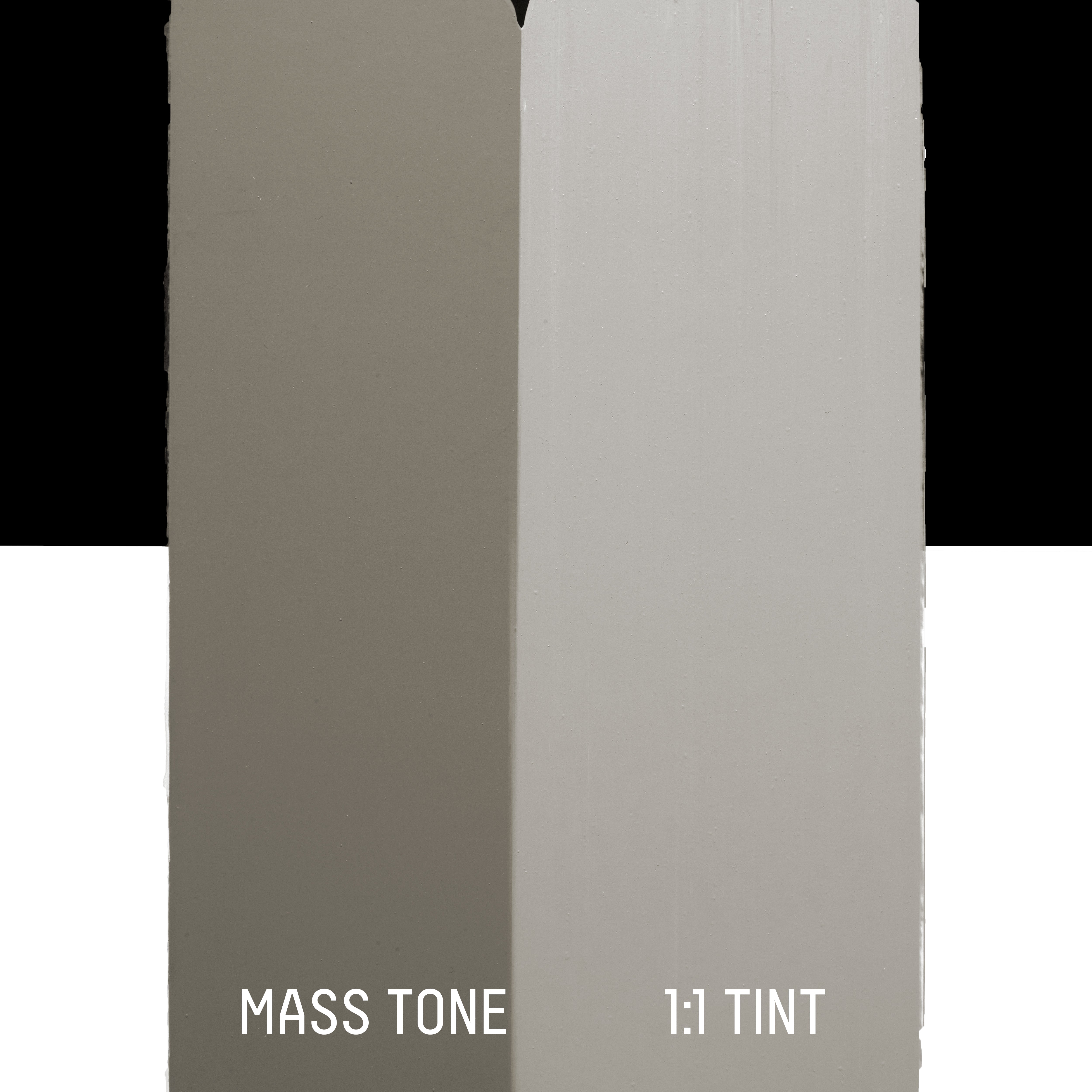 A stable all-round opaque mid grey, made up of multiple pigments including iron oxide and titanium white