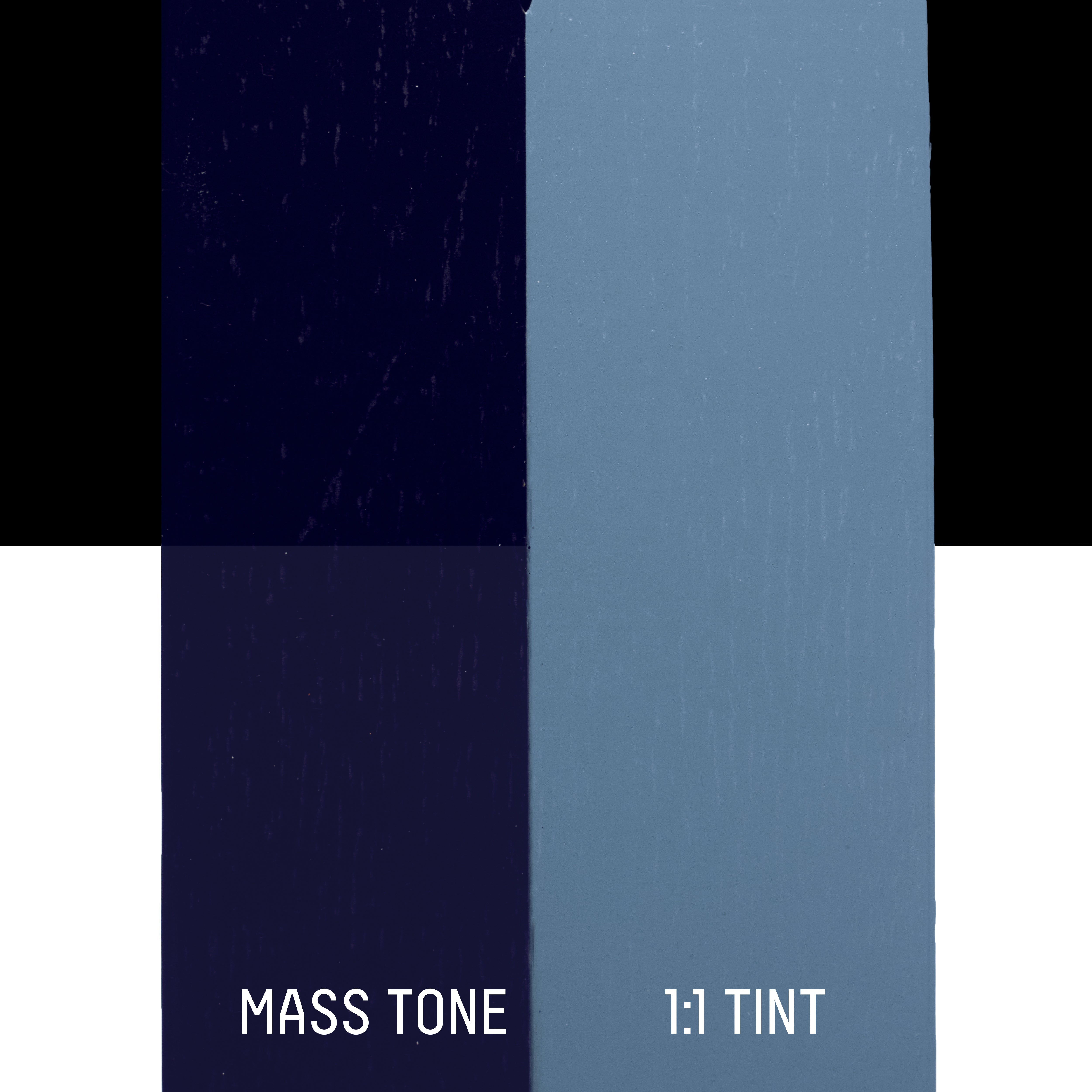 A deep dark blue semi-opaque color, that recreates the appearance of Prussian blue pigment. Prussian blue was the first known artificially manufactured color and was made by the colormaker Diesbach of Berlin in the early 1700s when experimenting with the oxidation of iron