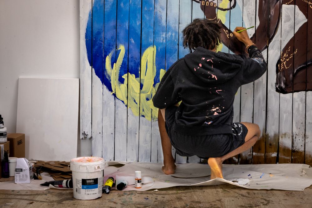 Learning from his time in the residency studio? “Don't rush yourself. And have confidence in yourself. You have to have the vision that there's nothing that can stop you, the confidence to apply for residencies, shows, to pitch your paintings, to share your work with the world.”