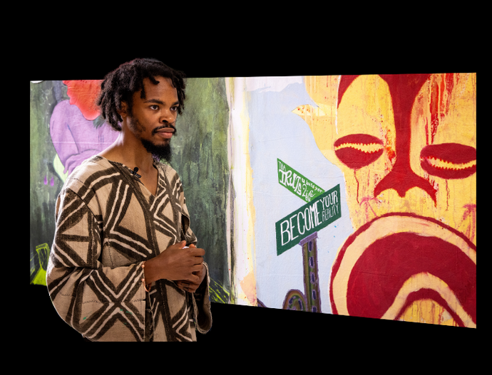 Meet Liquitex resident Jakada Khalfani, a US based mixed media artist and creative expression mentor, who has recently spent time living and travelling in Angola, Brazil and Nigeria. Jakada incorporates found elements, often using discarded objects or everyday items - from cardboard to crushed pills, shredded paper to silver foil - to underpin the meaning of his work.