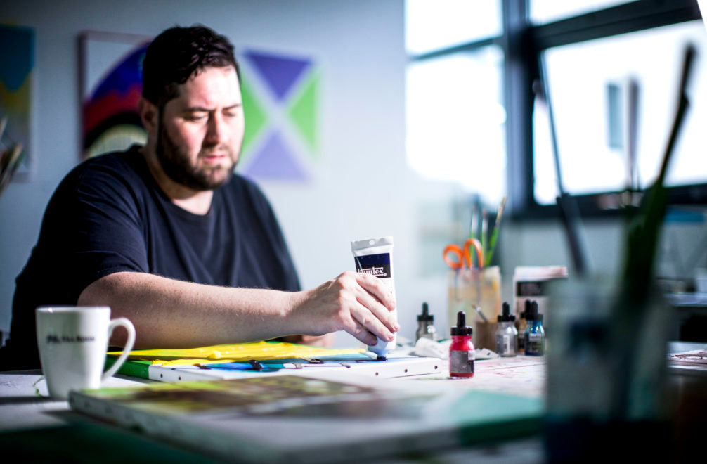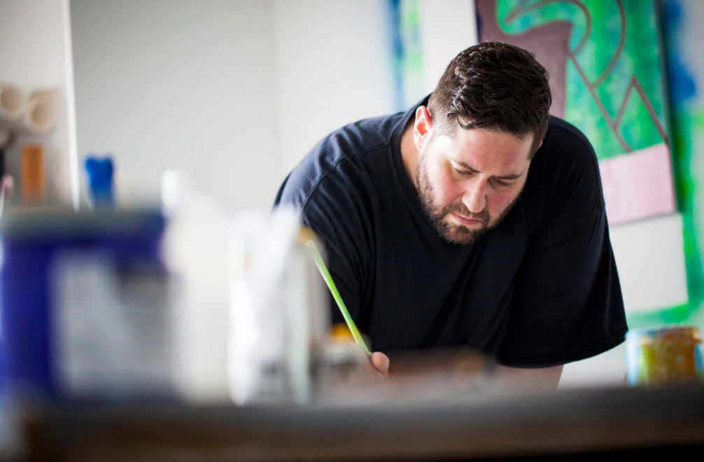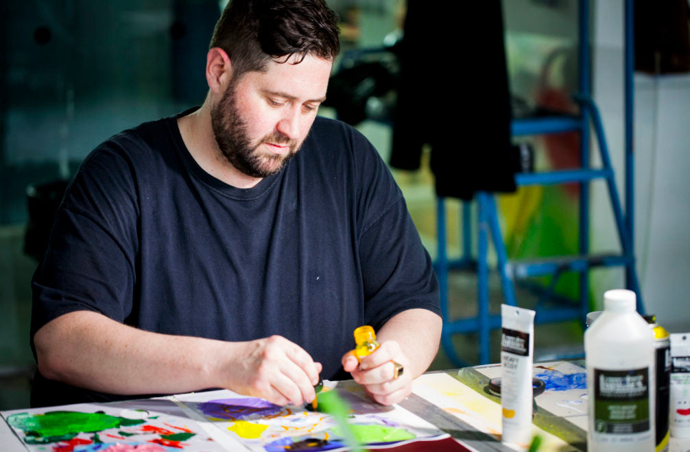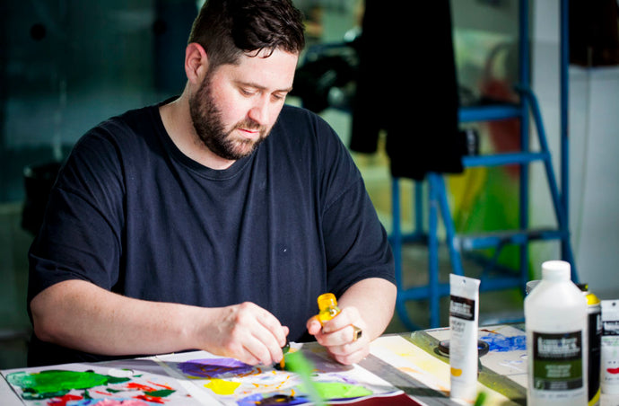 For Patrick Brennan, the excitement about painting comes from not knowing what’s next. Patrick's abstract style embraces a vast array of colors, materials and mediums and has earned him solo exhibitions in renowned galleries from North America to Europe. During his Liquitex Cadmium-Free Research Residency in London, he brought a unique energy to the studio: quickly filling the walls with canvases that evoked themes of nature, humanity and fantasy. This unbridled approach to working also allowed him to explore the full spectrum of acrylic materials in his abstract pieces - from mediums to Heavy Body and ink. Discover how Patrick got on below.
