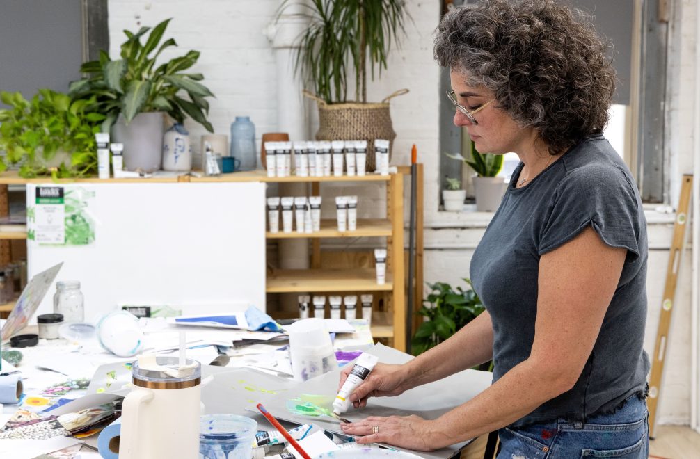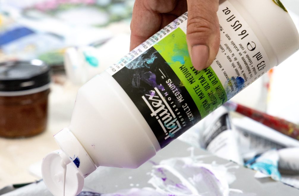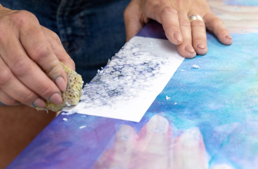 During her eight-week residency, Rachel worked with Liquitex Heavy Body, Ultra Matte Medium and Gel on Recycled Canvas. “Recycled canvas is the best quality. It holds the vibrancy of the inkjet transfers – the vibrancy of pigment is incomparable.”