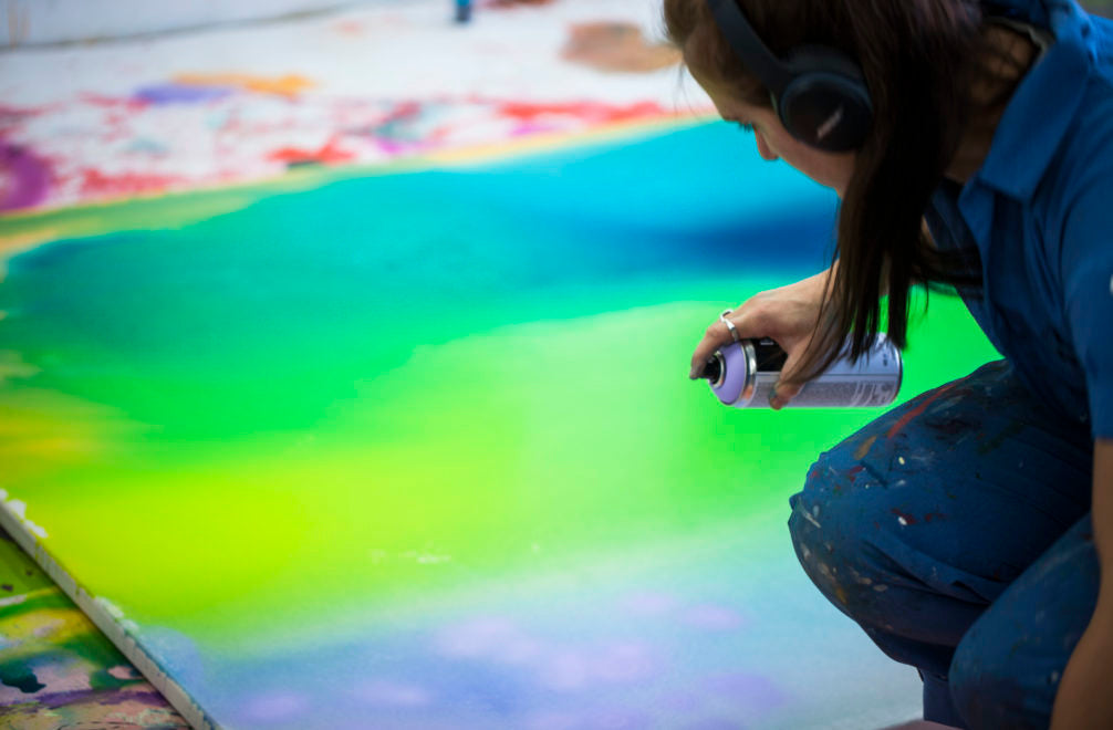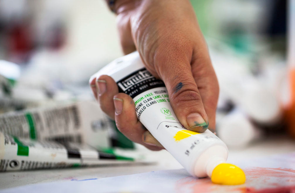 Utilizing an intuitive blend of mediums and techniques, Shara Hughes has become known for her surreal, symbolic and mystical works. Shara held a solo exhibition inside the Gallery Met at the 2017 Whitney Biennial and is represented by the prestigious Uffner Gallery in New York City. During her Liquitex Cadmium-Free Research Residency, Shara created a series of large-scale imaginary landscapes. Her free-flowing approach to the residency also allowed her to fully explore the Liquitex range and our cadmium-free paints. Discover more about Shara’s residency here.