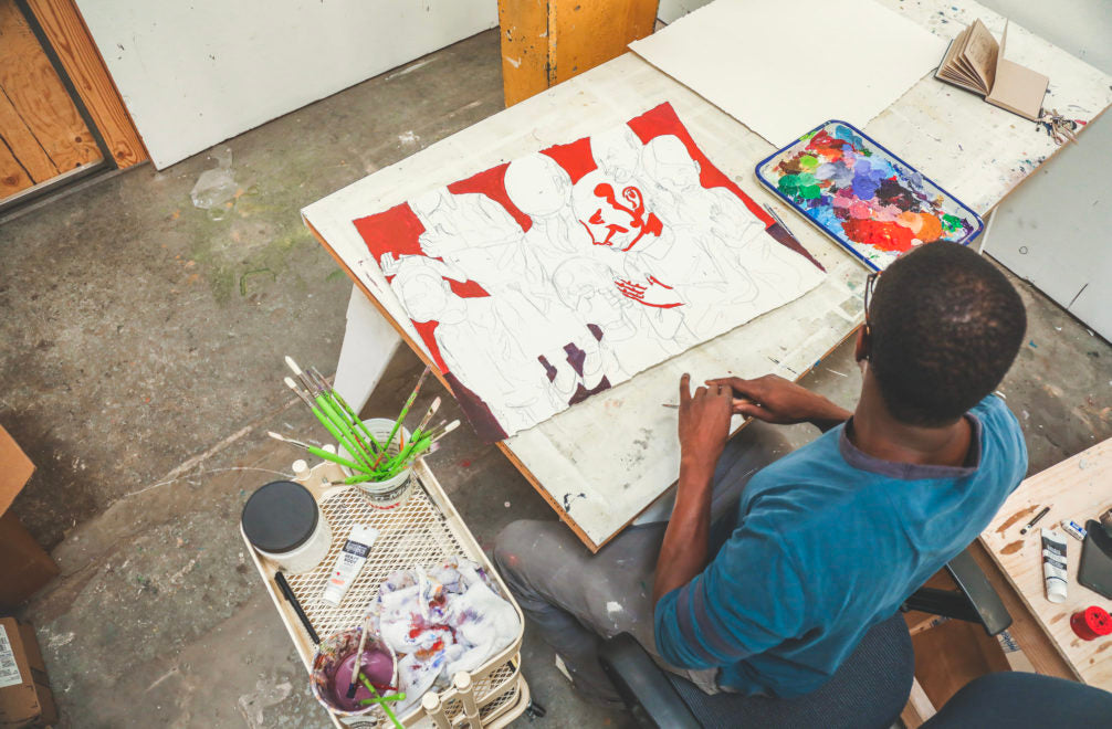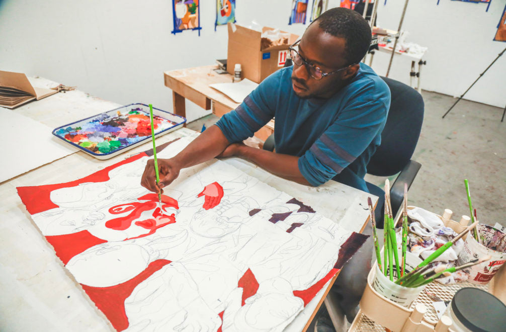 With a penchant for vibrant, almost sensational colors, Woody De Othello connects with his audience by embracing vulnerability in his sculptures and paintings. Since graduating from the acclaimed California College of Arts in San Francisco, Woody has been featured at successful solo and group exhibitions across America. During his Liquitex Research Residency at Minnesota Street Project studios in San Francisco, Woody discovered the rich qualities of our cadmium-free range and noticed the re-emergence of familiar figures in his work.