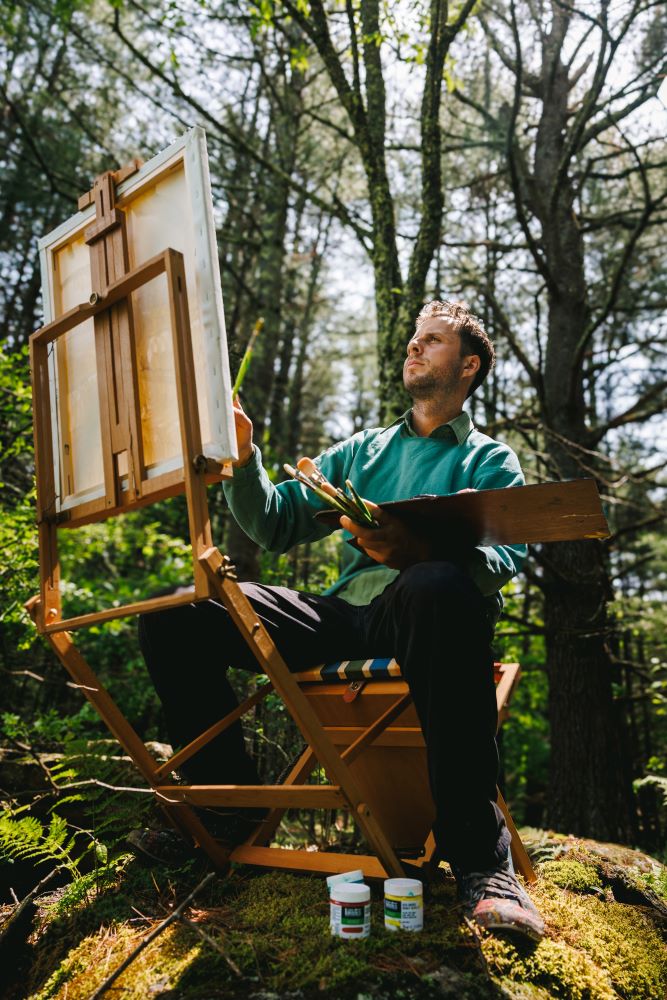 Based in the foothills of the Catskill Mountains in New York, the beauty of natural elements and quiet set the tone for David’s studio practice, with inspiration coming from painting outdoors and taking walks with his dog.
