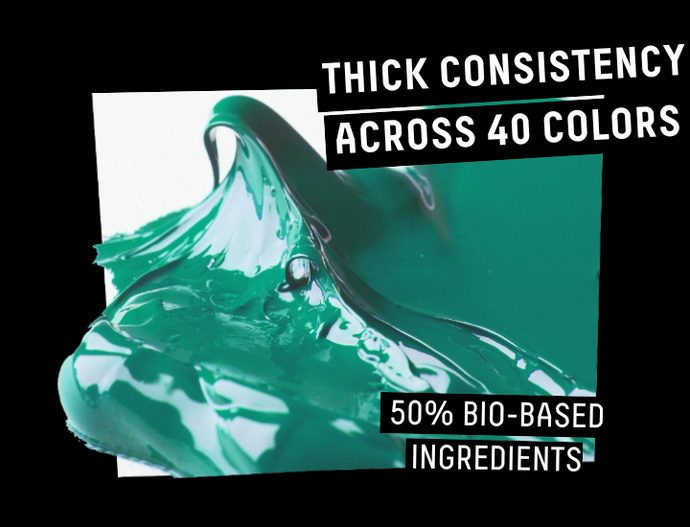 Why not 100%? Getting to 100% bio-based isn’t technically possible right now for an acrylic. With the ingredients currently available, an average of 50% is the highest achievable composition for acrylics that are lightfast, archival and pro-quality - on par with our professional acrylic ranges. But we’re not stopping here. As more renewable options become available, we’ll push further.