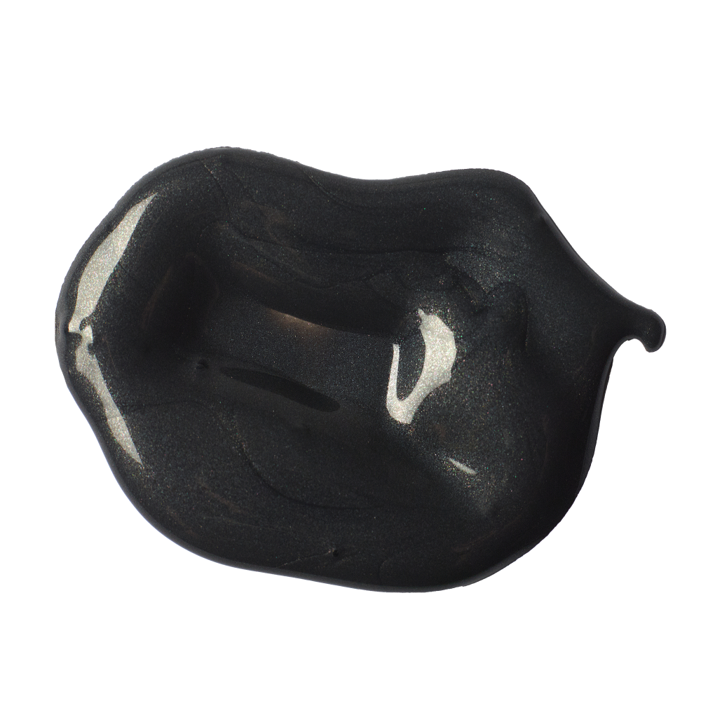 An opaque dark gray color with metallic flecks, made with iridescent mica and lamp black pigment