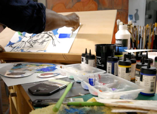 Liquitex Acrylic Gouache is flexible like normal acrylics, with improved performance. However due to the intensely high level of pigment solids we use, the formula is a little less flexible than a paint like Soft Body. Traditional gouaches are known for their cracking and inflexibility due to their pigment load, so our chemists have balanced this need for concentrated color with acrylic flexibility, to give us something with a much improved performance.