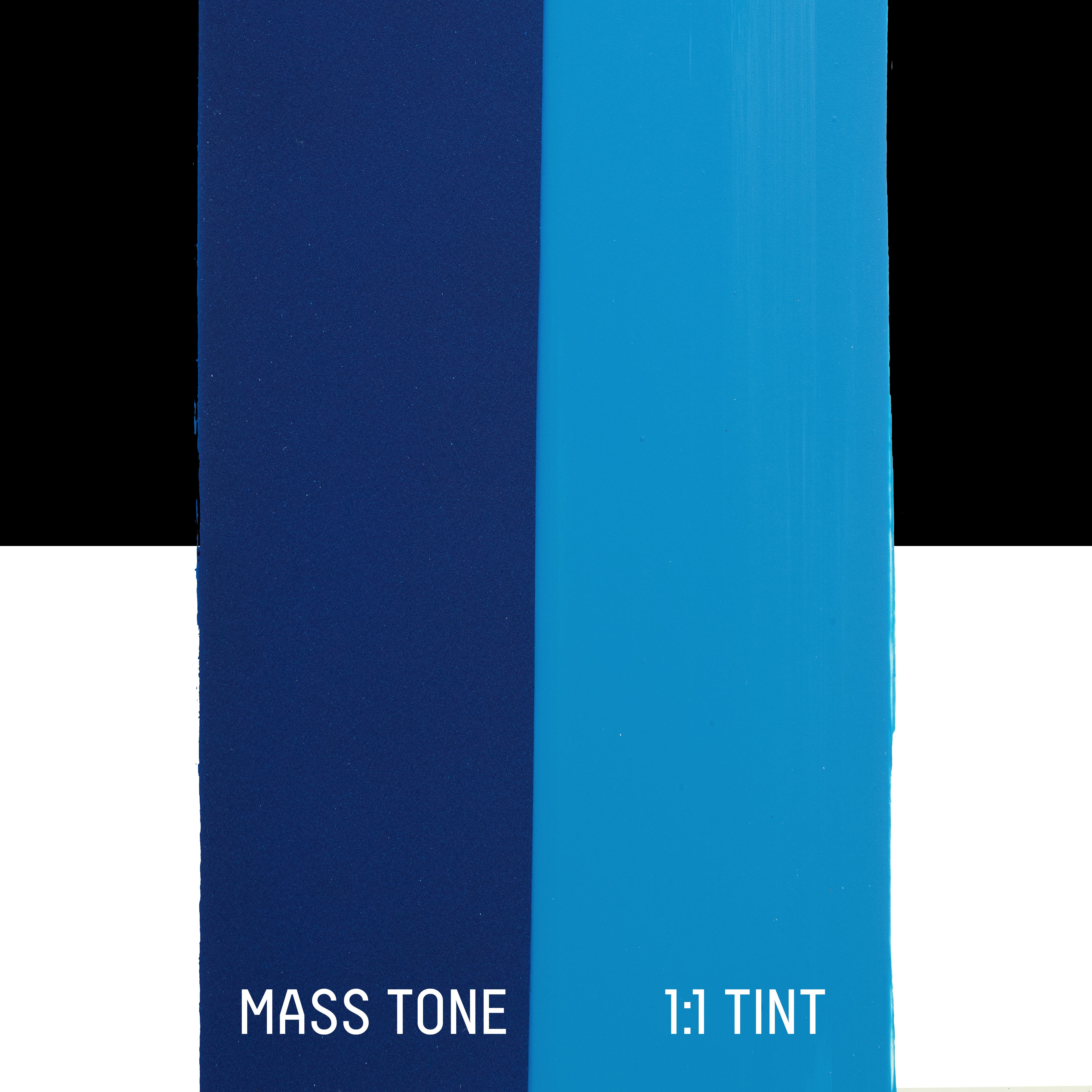 An intense deep blue single pigment color with a green undertone. It's made from the modern synthetic pigment phthalocyanine which was introduced in the 1930s and has a high tinting strength