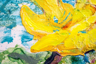 Eileen has also road-tested a brand new Liquitex paint format launching later in 2024 – so stay tuned for more on that. Other go-to studio essentials from the residency include Liquitex Professional Matte Medium, “a workhorse” for glueing media to canvases and adjusting paint opacity; and the freedom of Liquitex Freestyle palette knives. “I’ve loved exploring the big wide gestures I can make. You can put the paint on thick, like frosting on a cake, or scrape into it and draw into your color. I’ve really had fun.”