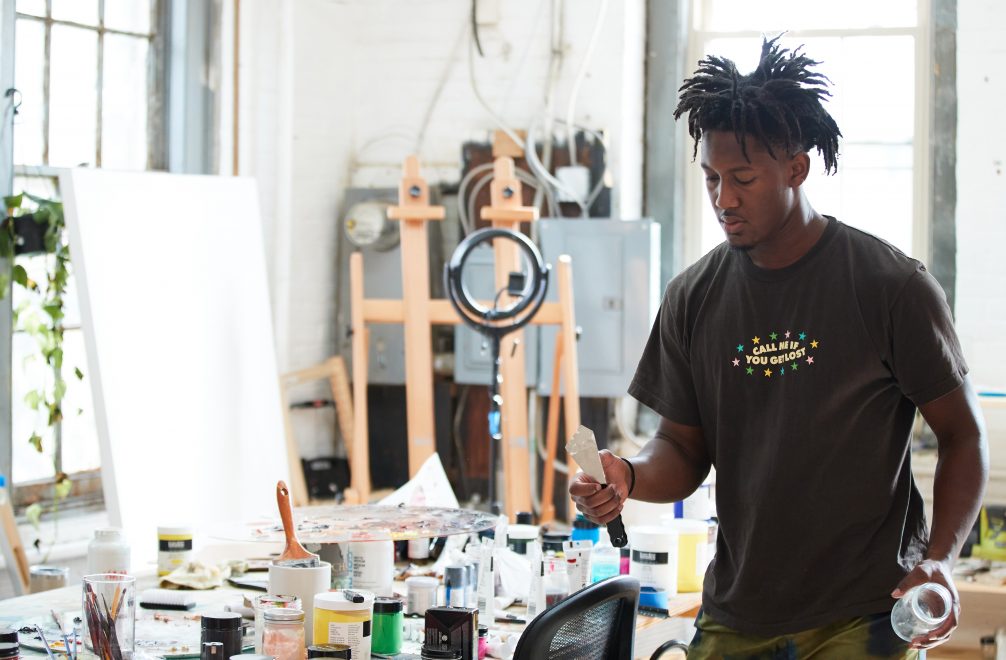 Meet Omar. Painter, conversationalist, and explorer of perception. During his Heavy Body Acrylic residency, Omar experimented with new colors and techniques while creating a series of portraits dealing with the concept of sonder: