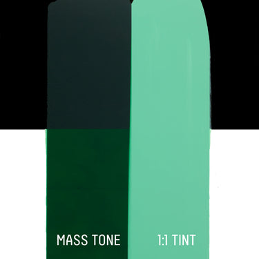 A deep green-blue color, made up of multiple pigments, that is semi-opaque