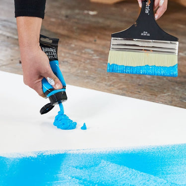 Basics paints maintain a consistent medium viscosity across all colors for versatility. We also offer Basics Acrylic Fluid for a more fluid viscosity in addition to our regular medium viscosity basics paint.