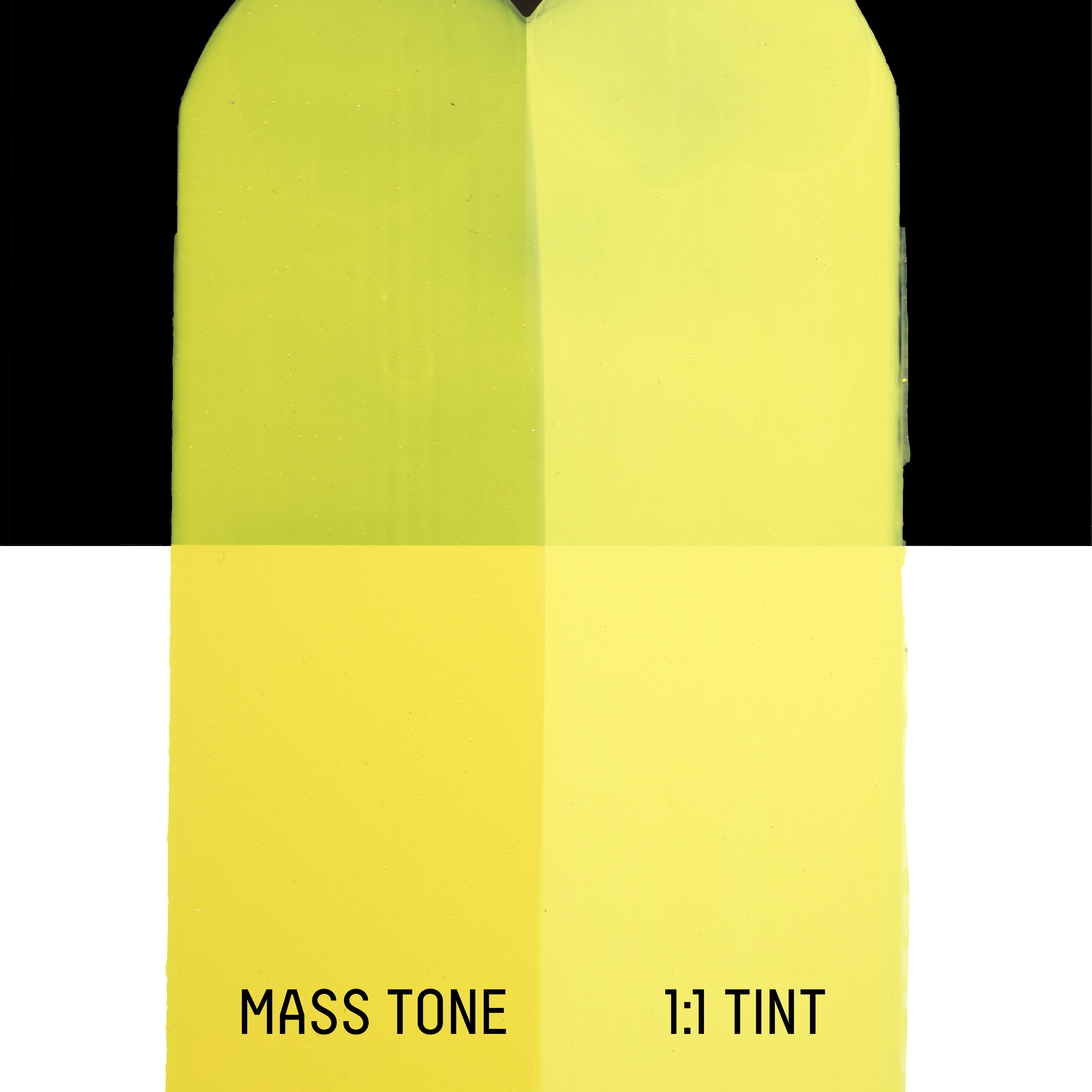 A bright yellow hue color with semi-opacity. This hue is a recreation of the true inorganic cadmium pigment, which was discovered in 1817 as a by-product of the zinc industry