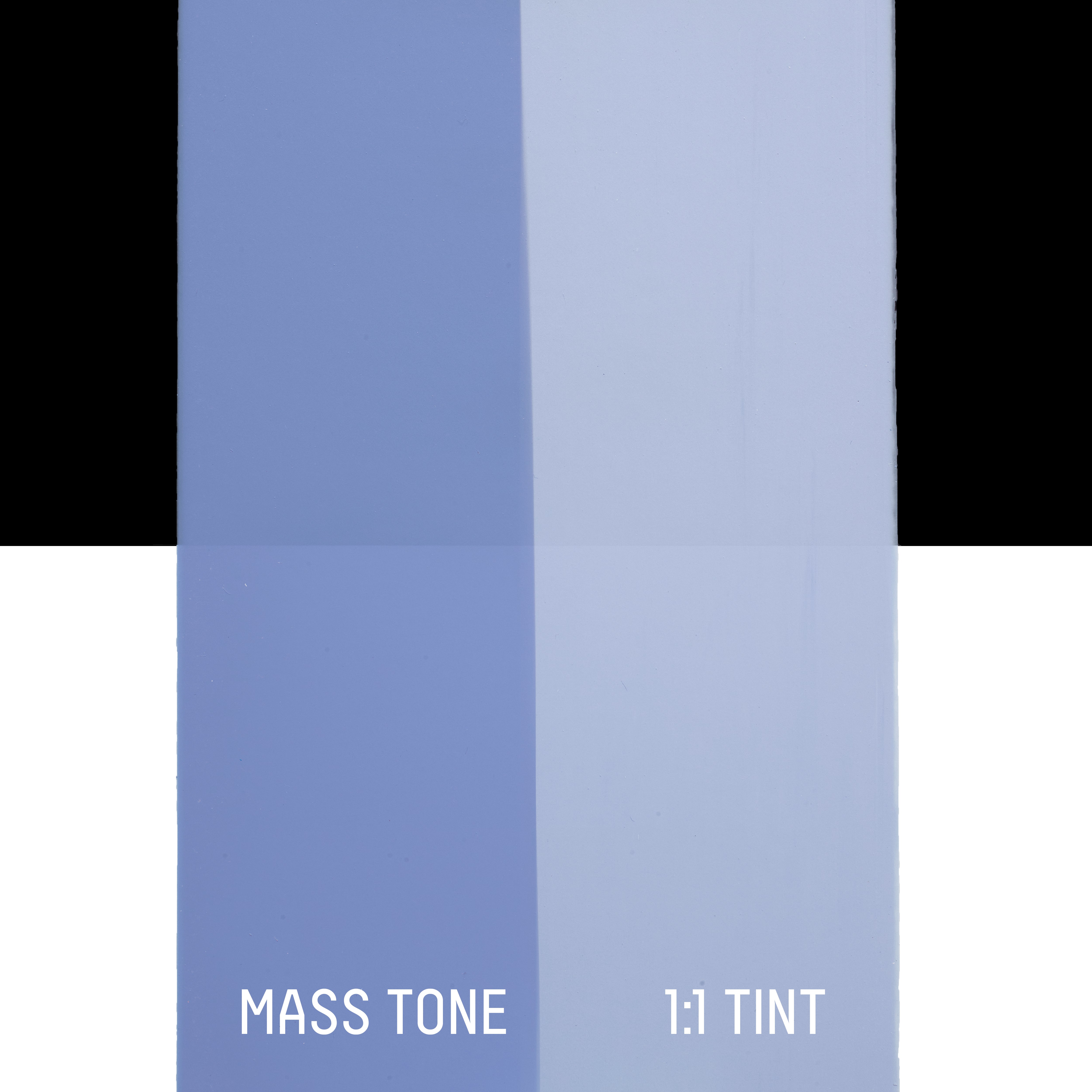 A blend of ultramarine blue and titanium white pigments, this is a vibrant mid blue which is highly opaque.