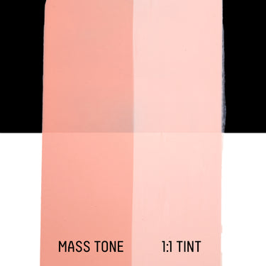 A pale and soft pink with a yellow tinge. This is an opaque color made up of multiple pigments.