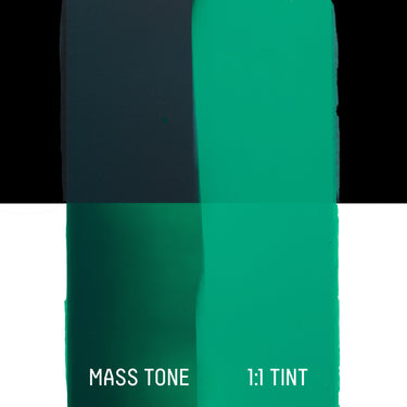 A brilliant semi-opaque green single pigment color with a blue undertone. It's made from the modern synthetic pigment phthalocyanine which was introduced in the 1930s and has a high tinting strength