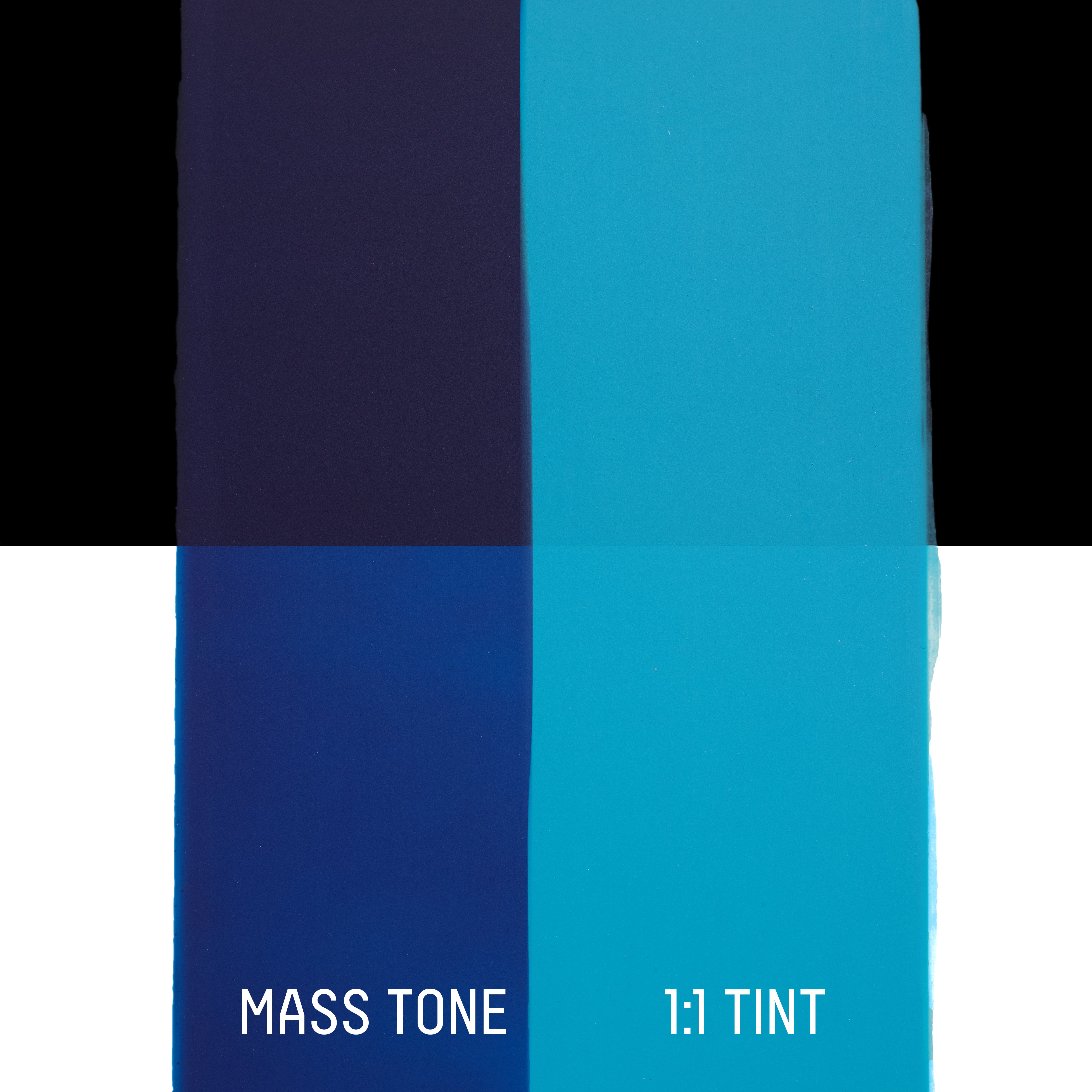 A single pigment, semi-opaque primary color made from phthalocyanine blue red shade. This offers excellent clean color mixes and is useful for color theory