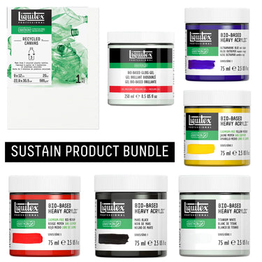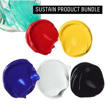 A must-have for colour mixing enthusiasts, the SUSTAIN Product Bundle includes three essential primary colours plus Titanium White and Mars Black for adjusting tones and values. Crafted from an average of 50% bio-based materials, this set of Bio-Based Heavy Acrylic is intensely pigmented and offers professional performance while reducing environmental impact.