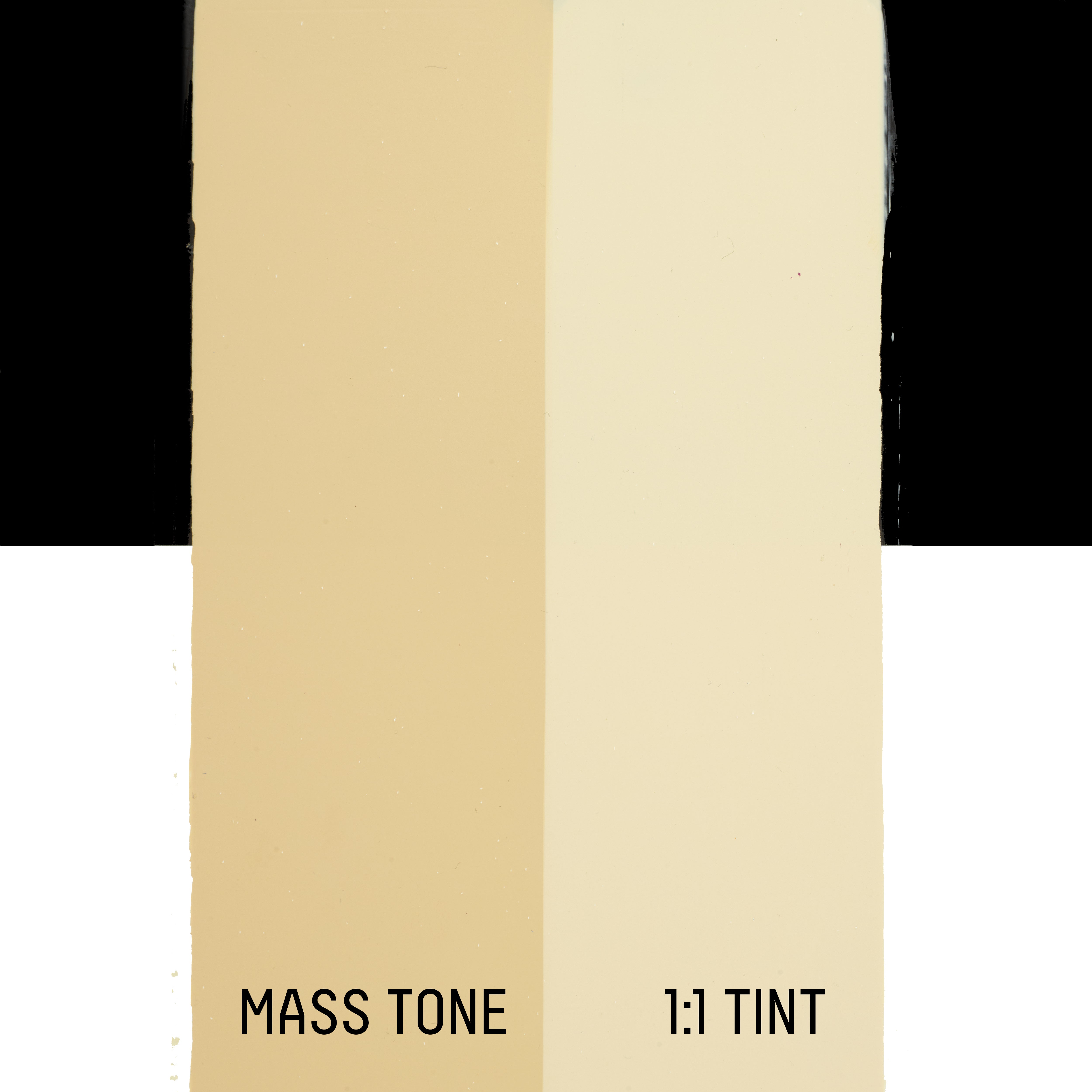 An opaque, warm creamy white containing a blend of pigments. The shade originated in the 1960s as the result of a manufacturing error when making titanium white paint