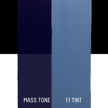 A clean deep blue, transparent, single pigment color. It is a modern organic pigment, patented in 1901